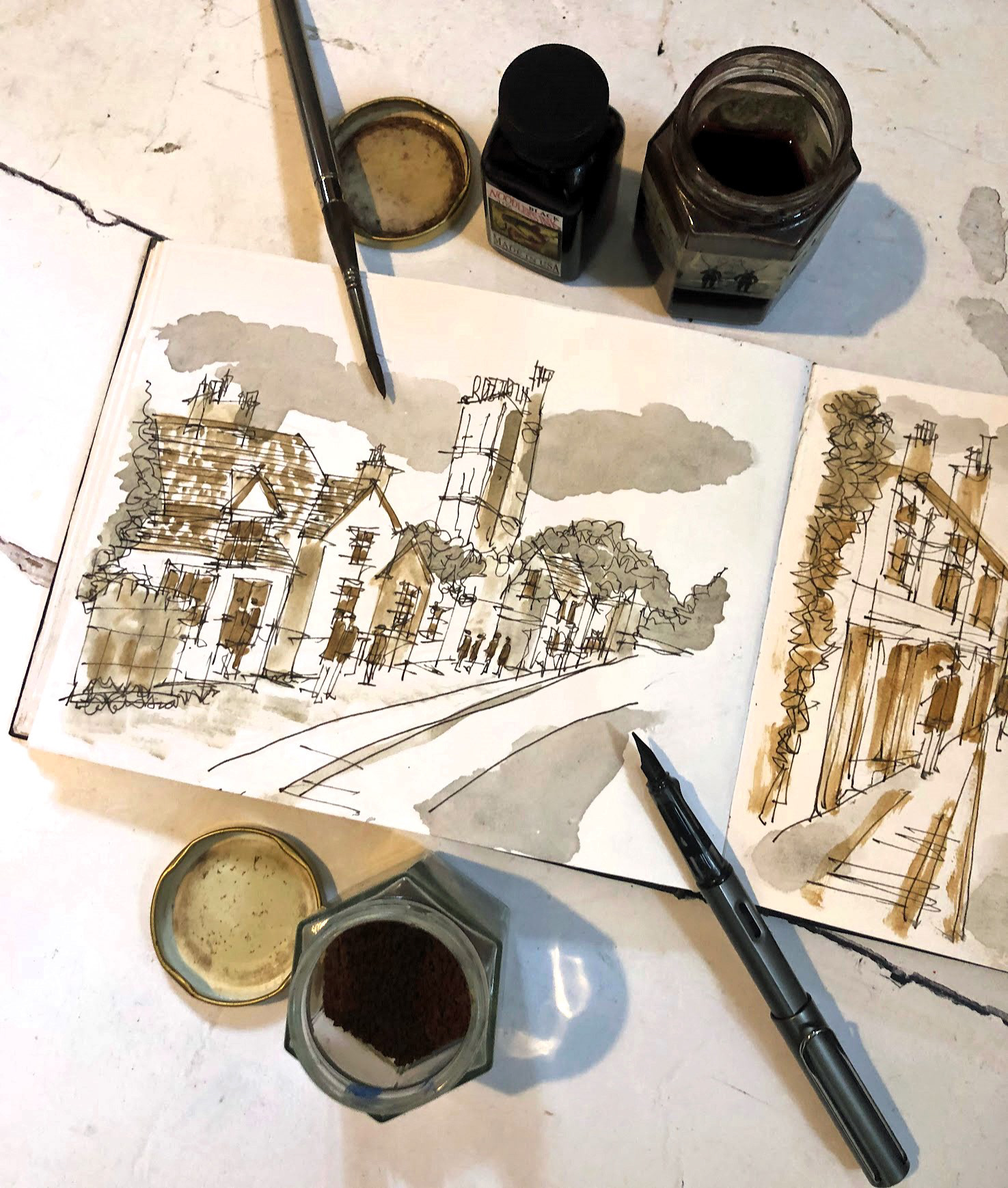 I have been sketching for many years - it seems like forever and my style has always been evolving but the style I find the most enjoyable is line and wash - it gives me a sense of freedom.