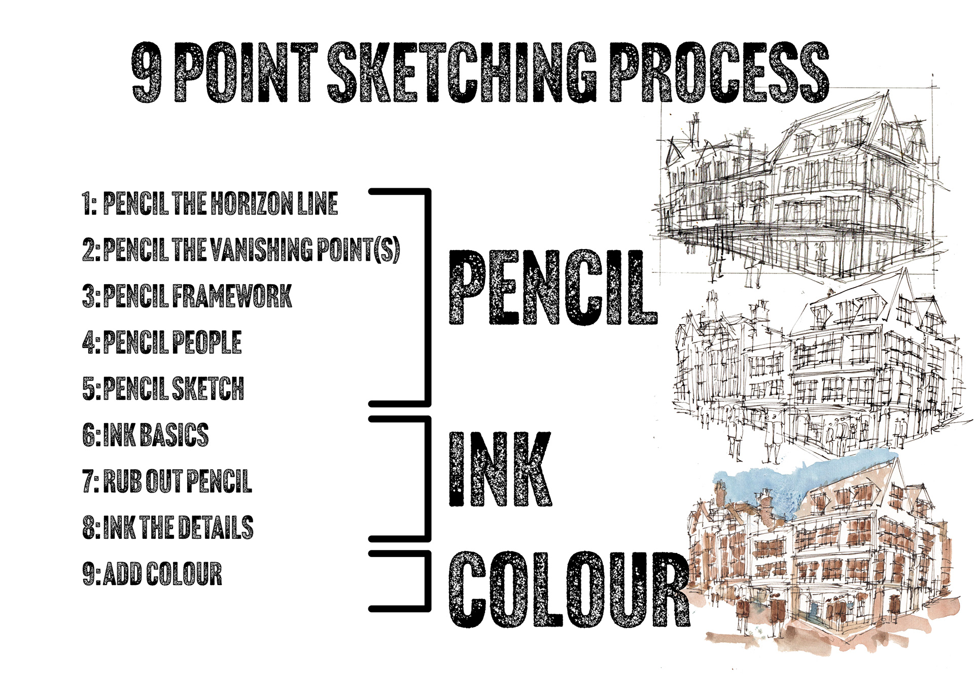 I have devised a 9 point sketching process - anyone can follow it. It doesn't pretend to be too clever.
